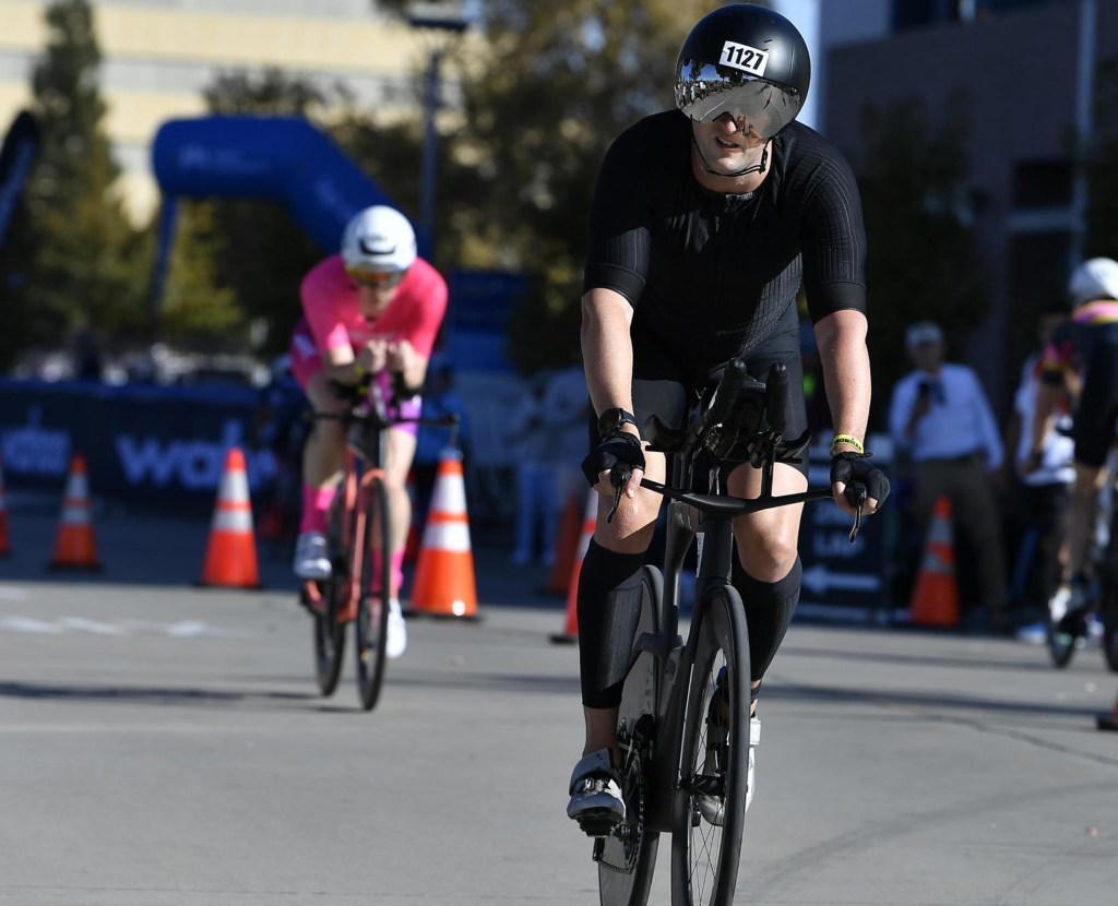 This is where I started my race. I would break down the bike into 4 quarters, with only one really sizable to address. There were 2 out and backs, with a building wind in our face out and tailwind back into town. This made the first quarter less of a concern since wind was lower and adrenaline was high. My heart rate was elevated but in a way I was familiar with. I wanted 140bpm but was 150+. I used this time to focus on the course, taking in fluids and establishing a foundation for the 5 hours to come. At one point I practiced peeing before an aid station to rinse off after, which I thought I’d do each time, but that plan went out the window when I proceeded to pee myself 20+ times on the bike (a new PR!).
