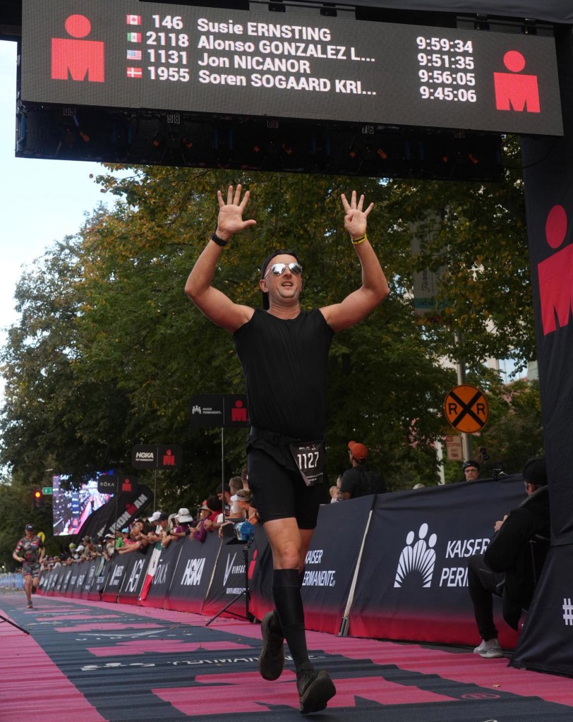 As I crossed that finish I held up 9 fingers to show the realization of my goal 9:XX (whether it was 9:01 or 9:59:99 it didn’t matter to me) and for the first time in my life I got something else I’d always wished for but never experienced.. tears rolling down my face at a finish line from the emotion all those 10 hours, 6 months and 15 years had built it up to. I joke that I never got to that “ugly cry” break down tears moment, but for me this was all I could hope for. And the wild part is I never had to really hurt, dig deep, push through or crawl to the finish to get there. It just unfolded pleasantly and as I’d hoped for, not a cake walk but never a death march. The perfect ending to a perfect day.